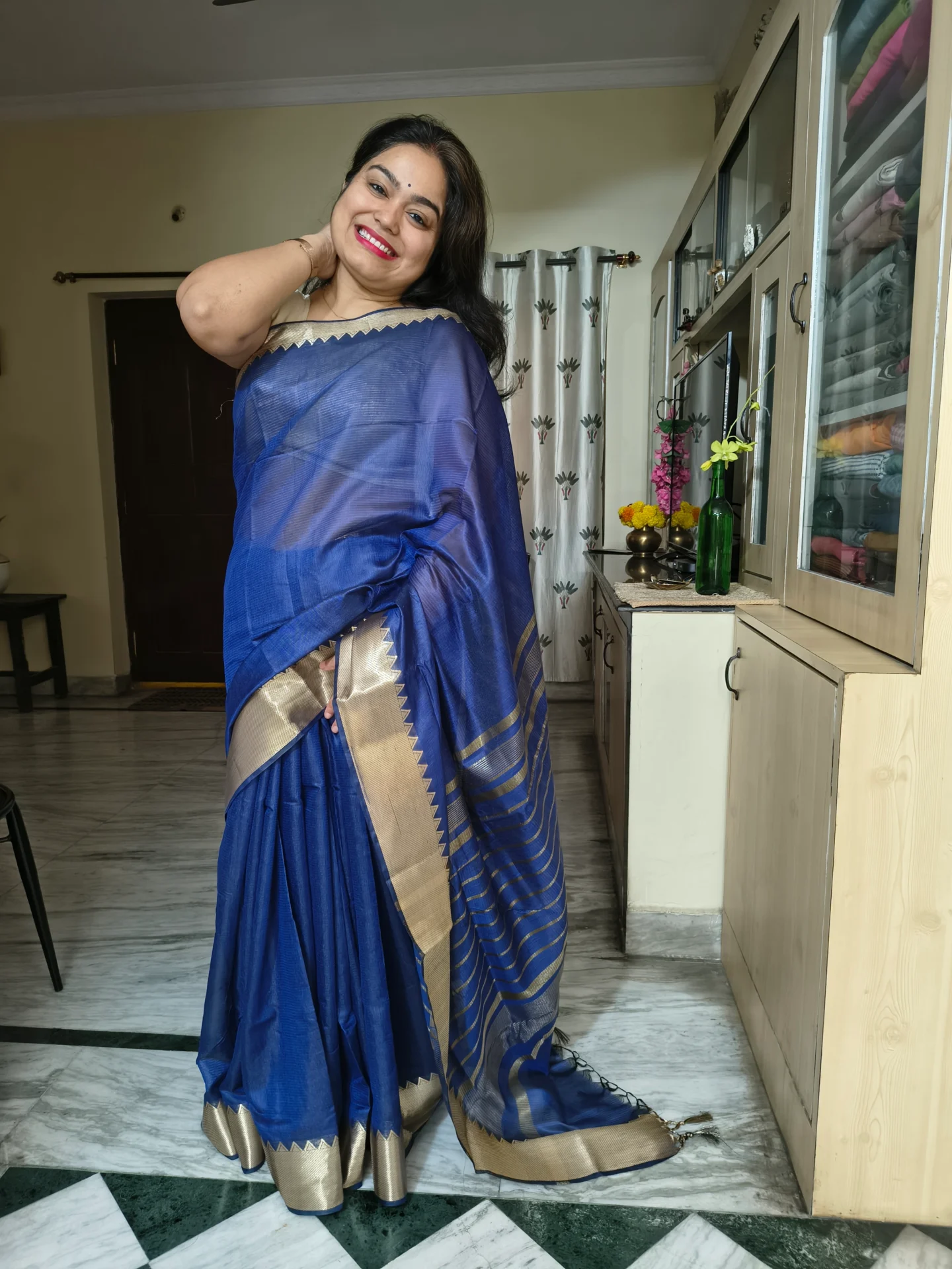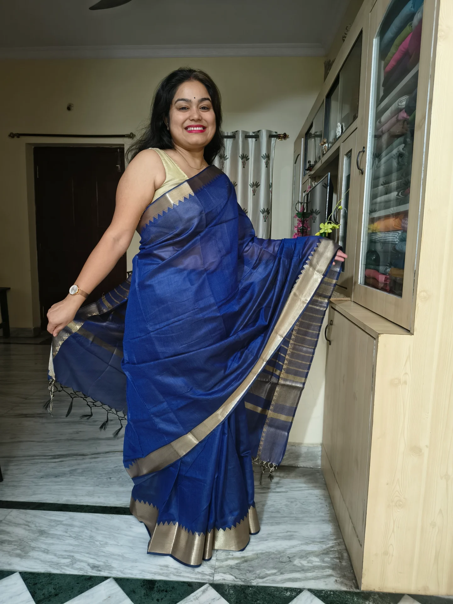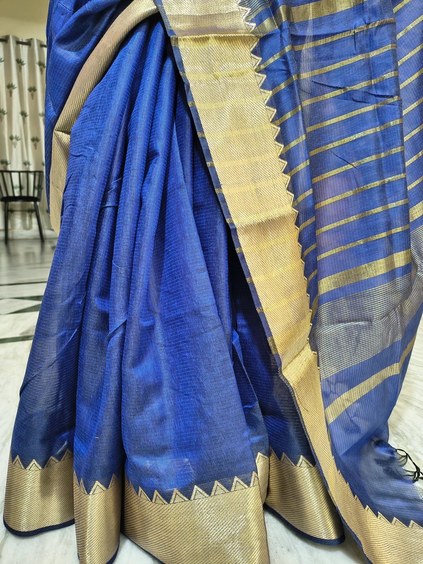 is a Mangalgiri cotton silk saree with a plain body and zari woven temple borders.