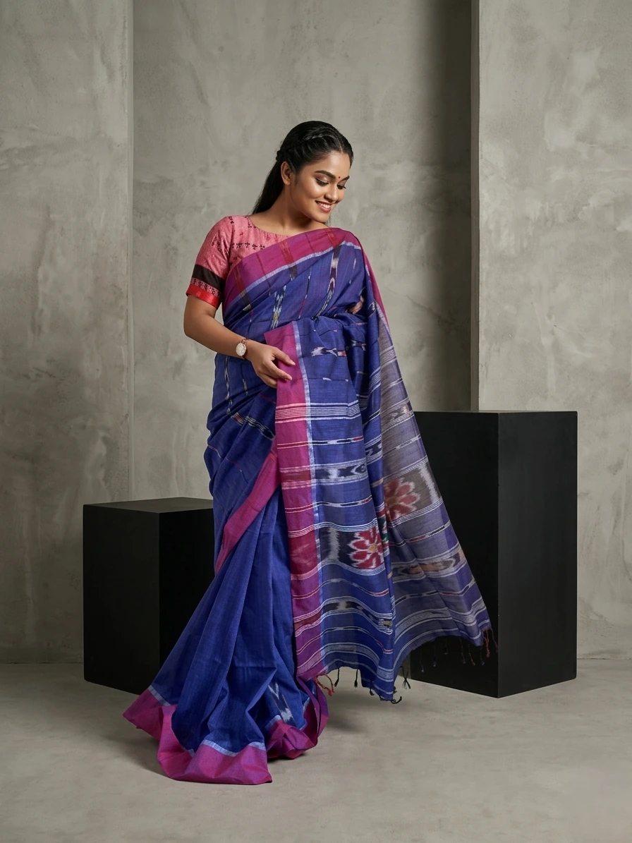 Blue Sambalpuri Ikat Printed Soft Cotton Saree