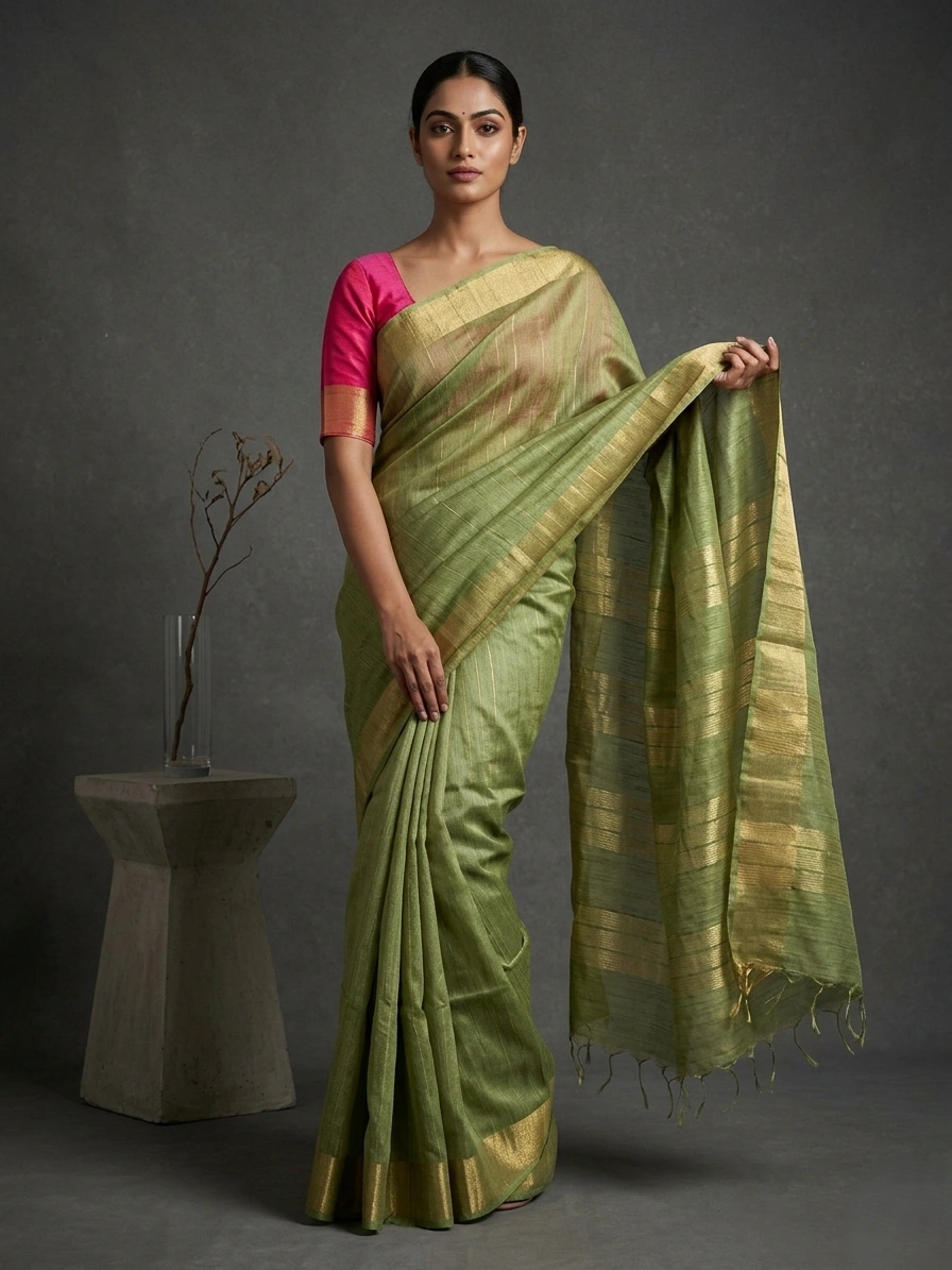 Green Semi Tussar Silk Saree