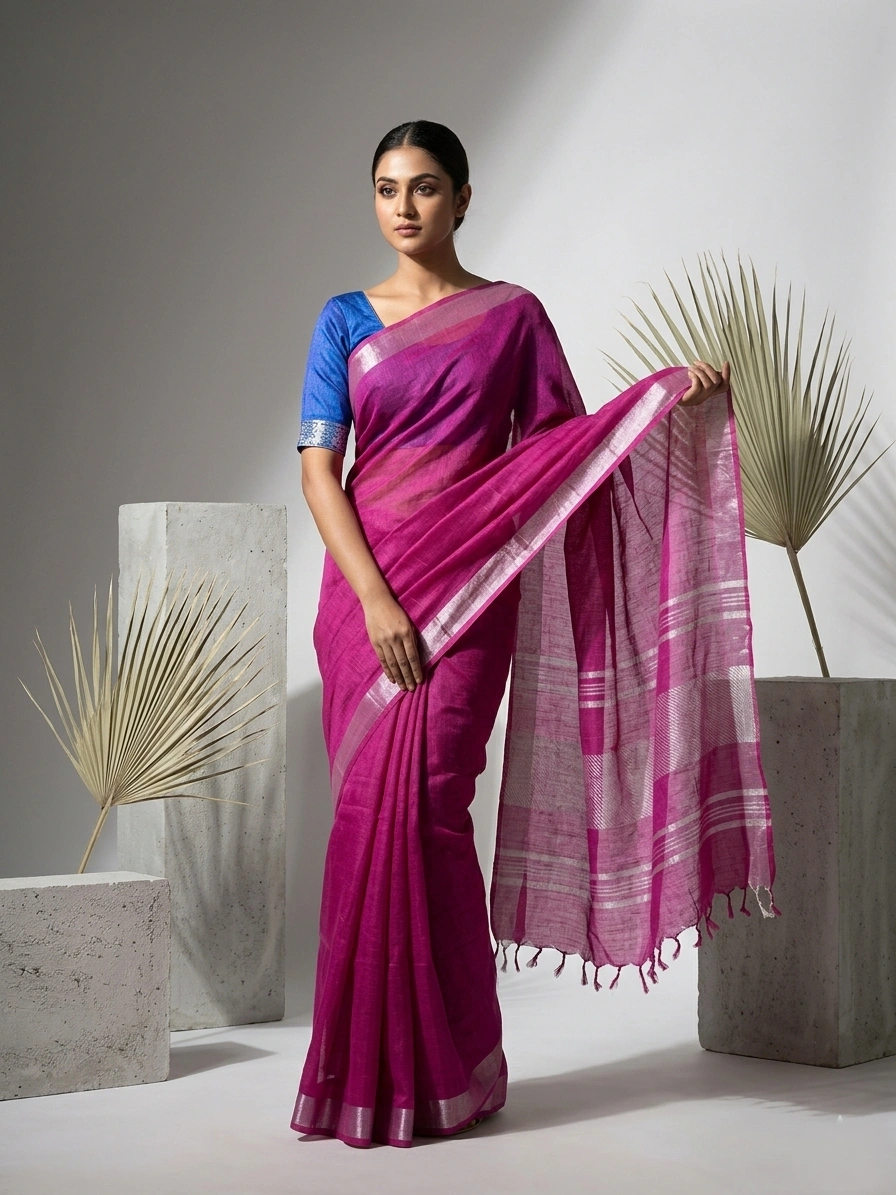 Magenta Blended Linen Saree