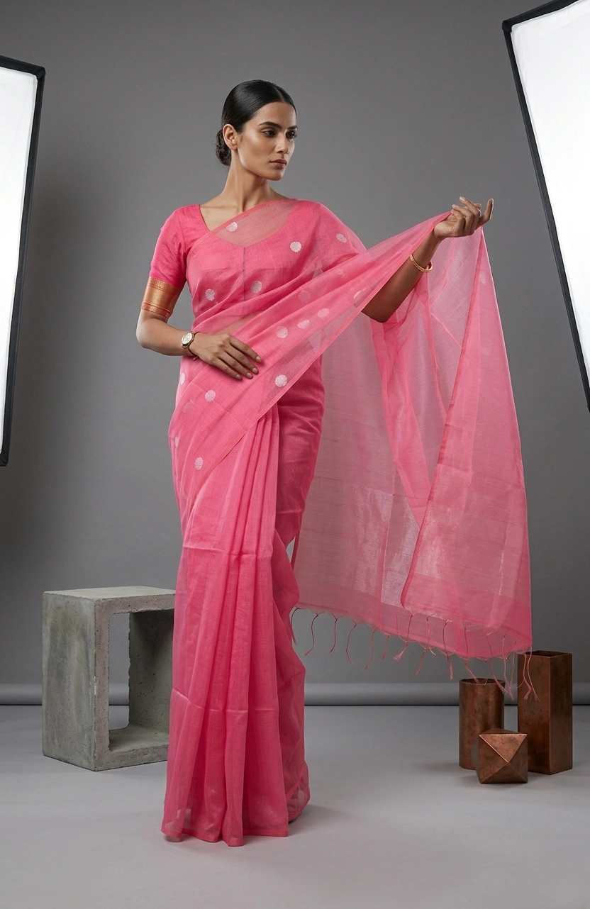 Pink Soft Silk Saree with Pink Muslin Drape