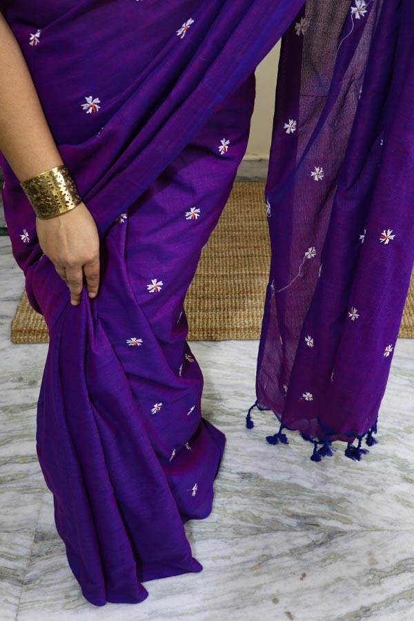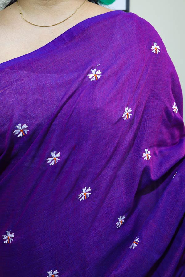 Violet Soft Cotton Saree with Parijat Motifs