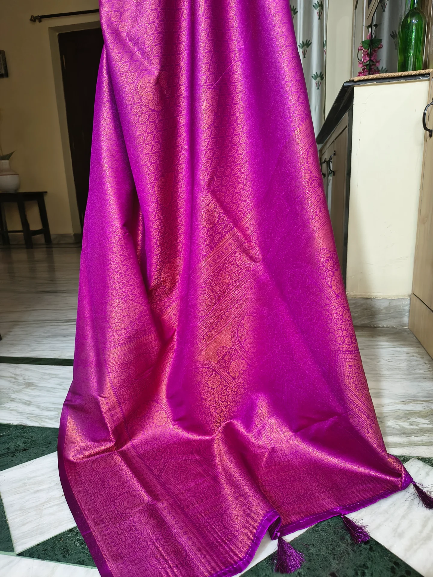 The saree’s colour may vary slightly due to the lighting conditions, the resolution of various screens and their settings.